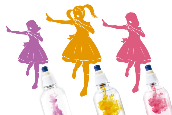 ペットボトルにつけて押すだけでミネラルウォーターがジュースに変わり、さまざまなフレーバーごとに多彩なカラーがあって見ているだけでも楽しめます。